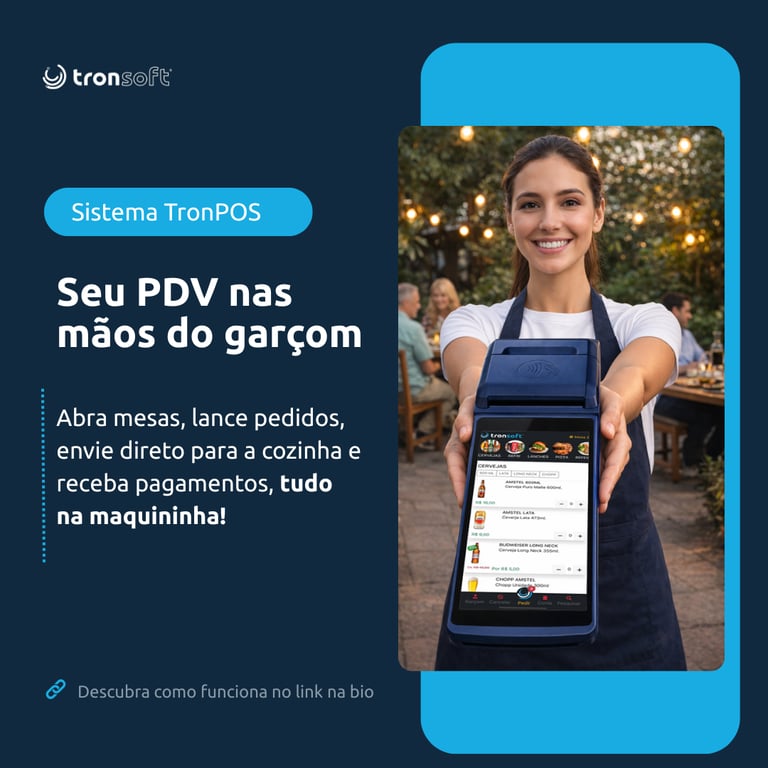 Com o TronPOS, o garçom lança pedidos, envia direto para a cozinha e ainda finaliza o pagamento na mesa.